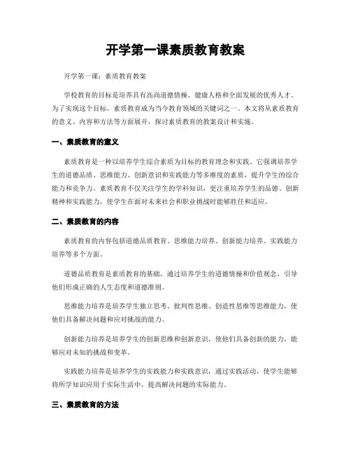 开学第一课的素质教育与教学设计引言:
