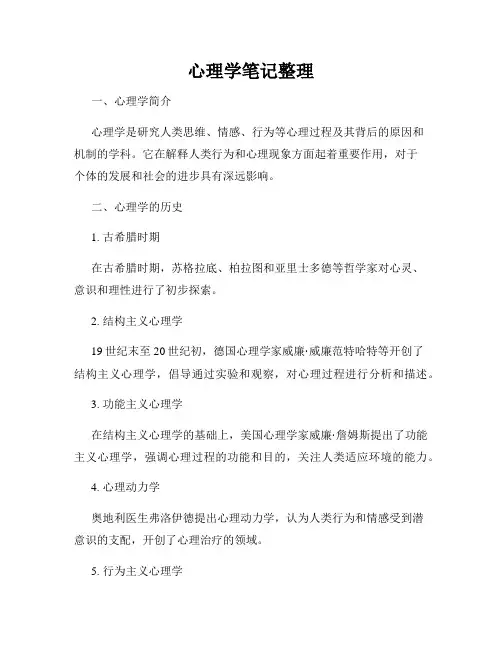 心理咨询师考试笔记整理一、基础心理学部分。