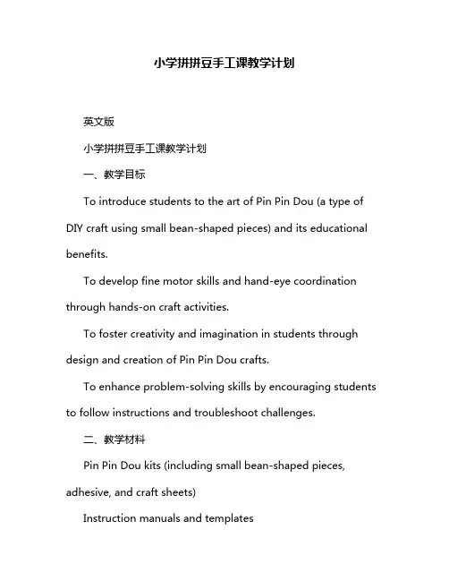 六、教学计划1. 制定手工制作课程的教学计划,确保教学内容和方法的连贯性。