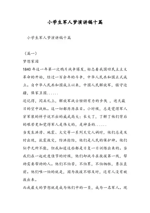本文为word格式,下载后可编辑修改,也可直接使用小学生军人梦想演讲稿四篇