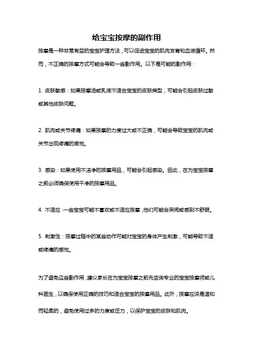 2. 肌肉或关节疼痛:如果按摩的力度过大或不正确,可能会导致宝宝的肌肉或关节出现疼痛的感觉。