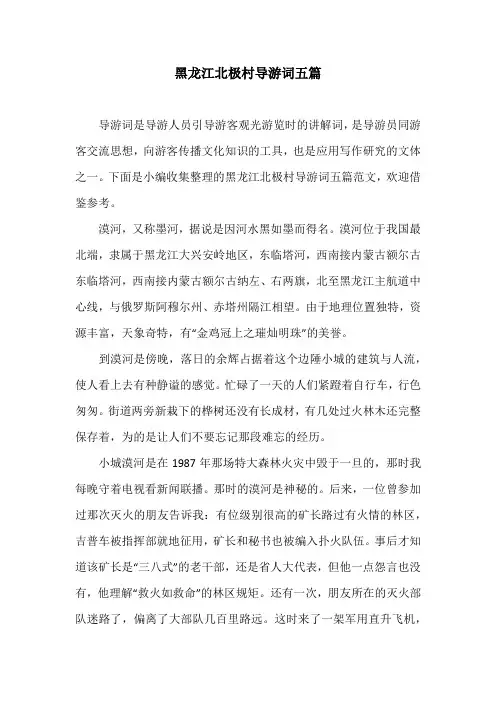 下面是小编收集整理的黑龙江北极村导游词五篇范文,欢迎借鉴参考。