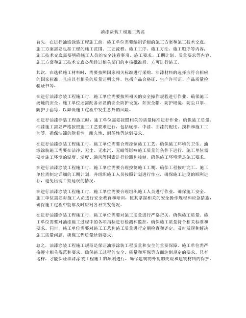 油漆涂装工程施工规范首先,在进行油漆涂装工程施工前,施工单位需要编制详细的施工方案和施工技术交底。