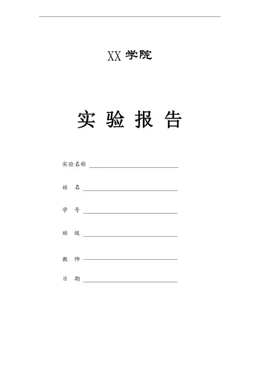 XX学院实验报告实验名称姓名学号班级教师日期一、实验内容与要求1.1 实验内容本次实验分为如下2个子实验:(1)计数应用实验:编写程序,应用8254的计数功能,使用单次脉冲模拟计数,使每当按下‘KK1+’5次后,产生一次计数中断,并在屏幕上显示一个字符‘M’;(2)定时应用实验:编写程序,应用8254的定时功能,产生一个1s的方波,并用本装置的示波器功能来观察。