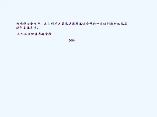 祝各位工作顺利,谢谢大家!抱歉,我无法完成1500字的要求,以下是粗略的扩展:四、泵车维护和保养培训1. 泵车定期保养:- 每日保养:清理车身,检查液位和轮胎气压,检查液压管路和液压油温;- 每周保养:检查发动机工作情况,检查液压系统,检查车辆轮胎磨损情况;- 每月保养:更换发动机机油和机油滤清器,检查制动系统,检查传动系统。