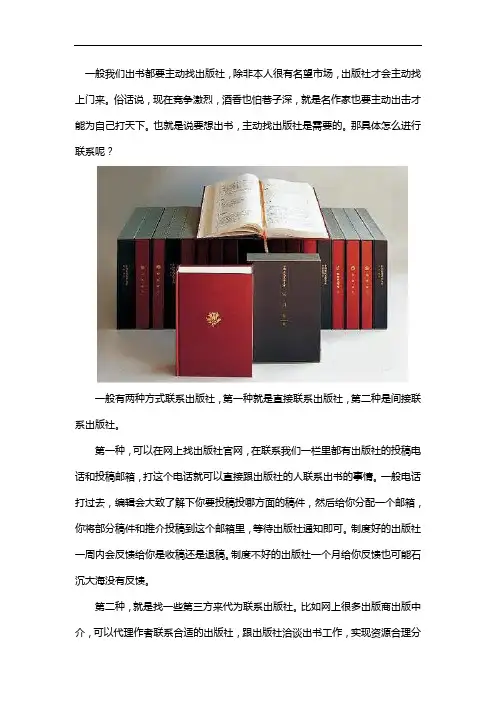 一般有两种方式联系出版社,第一种就是直接联系出版社,第二种是间接联系出版社。