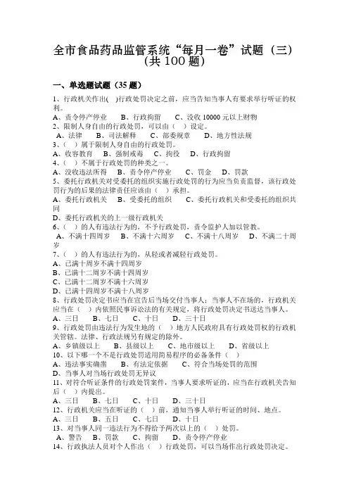 新版食品药品行政处罚程序规定(试题)科室:姓名: