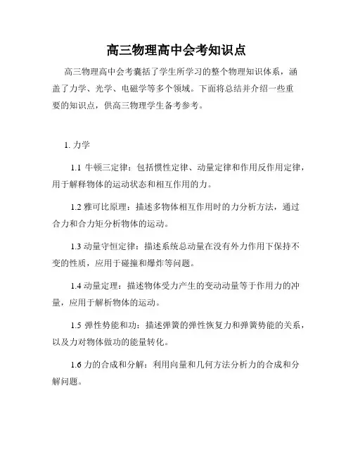 下面将总结并介绍一些重要的知识点,供高三物理学生备考参考。