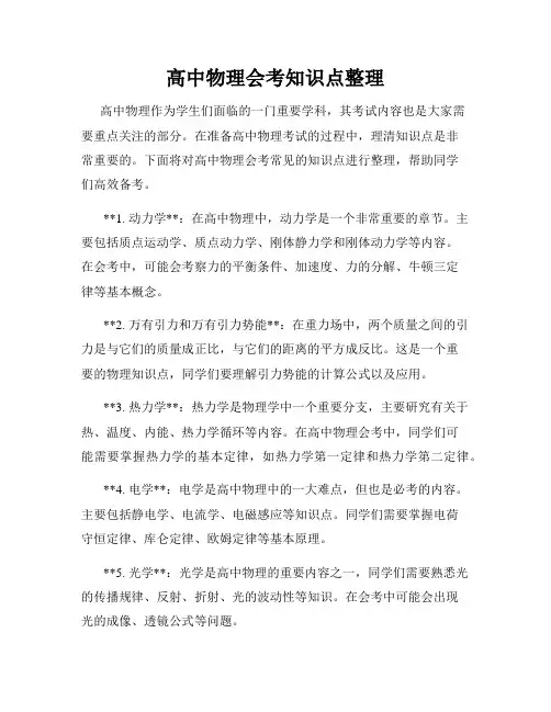 本文档将详细总结高二物理会考的知识点,以帮助学生更好地准备考试。