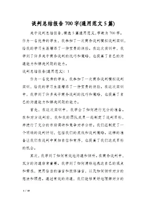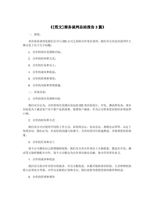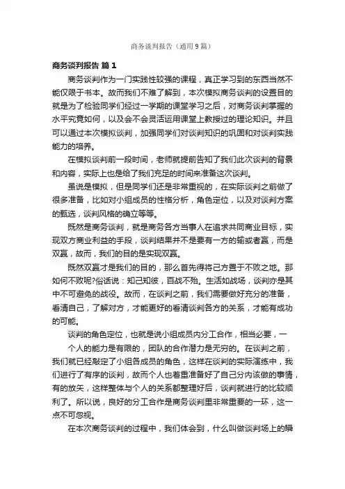 商务谈判总结报告(推荐3篇)商务谈判总结报告(推荐3篇)商务谈判总结报告篇1这学期我们开设了商务谈判这门课程。
