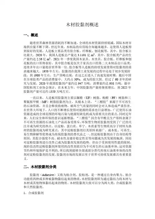 木材胶粘剂市场发展现状引言木材胶粘剂是一种广泛应用于木材工业中的重要材料。