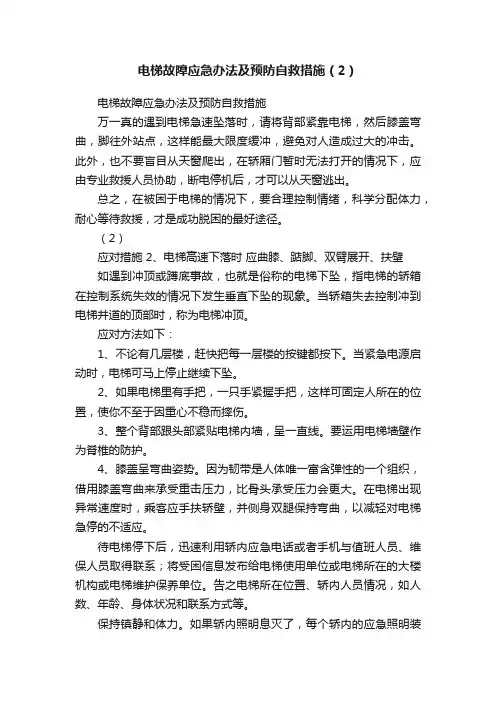 3. 电梯事故预防措施(1)定期保养和检查:定期对电梯进行保养和检查,确保电梯设备的正常运转。