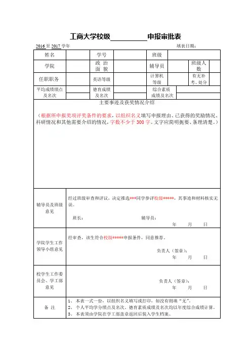 2014年重庆电子工程职业学院优秀毕业生推荐审批表