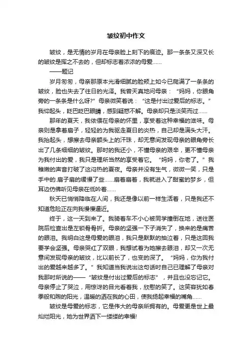 瞥到妈妈脸上的皱纹作文I remember when I first noticed the wrinkles on my mom's face. (我记得当我第一次注意到妈妈脸上的皱纹时。
