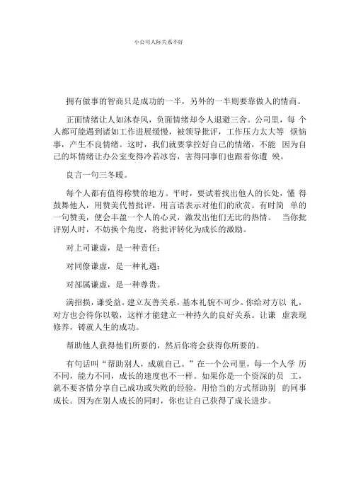小公司人际关系不好拥有做事的智商只是成功的一半,另外的一半则要靠做人的情商。