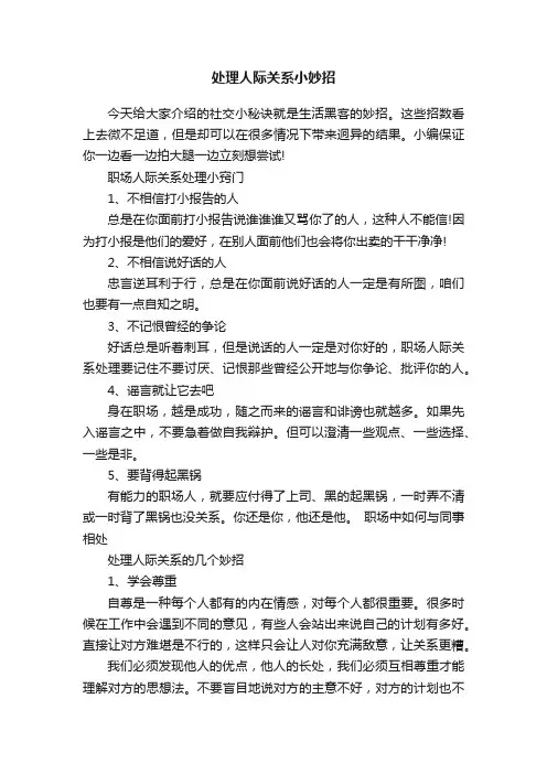 人际关系中的相处之道1. 认识自我,接受他人在我们这个五光十色的社会中,人际关系就像是一锅杂烩,各种味道混合在一起,有酸有甜有苦有辣,真是让人欲罢不能。