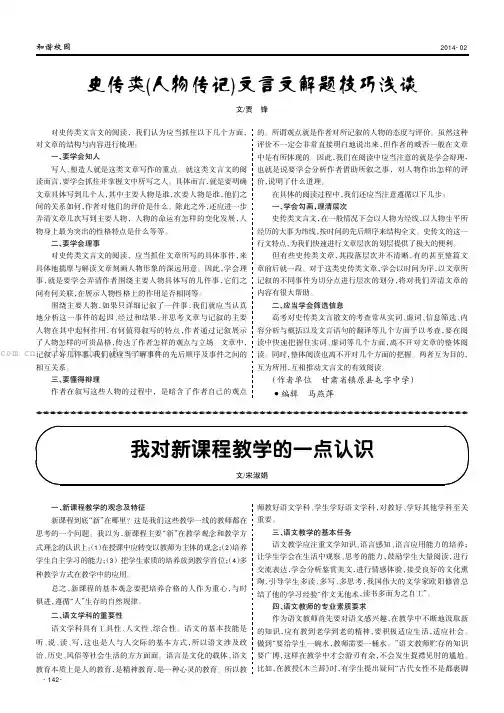 高考文言文阅读答题技巧指导(史传文阅读)一.文言文人物传记的基本写法人物传记一般分为三个部分:1.简介人物的基本情况。