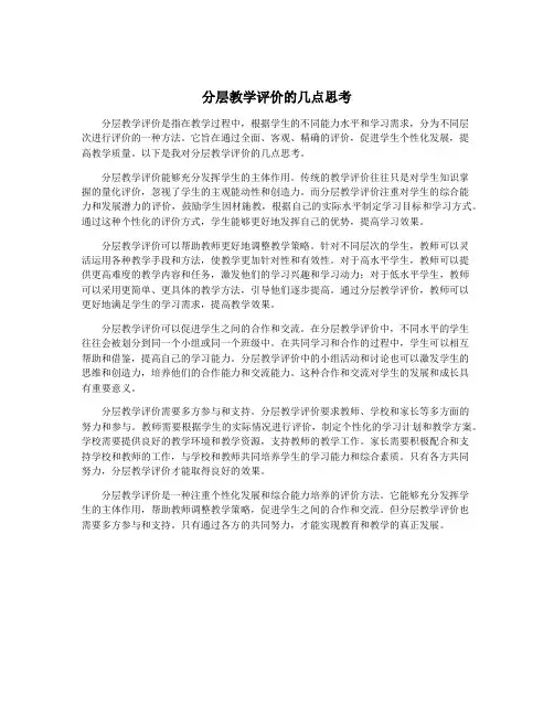分层教学评价的几点思考分层教学是一种教学策略,通过在不同的学习层次上提供不同难度和深度的内容,来满足不同学生的学习需求。