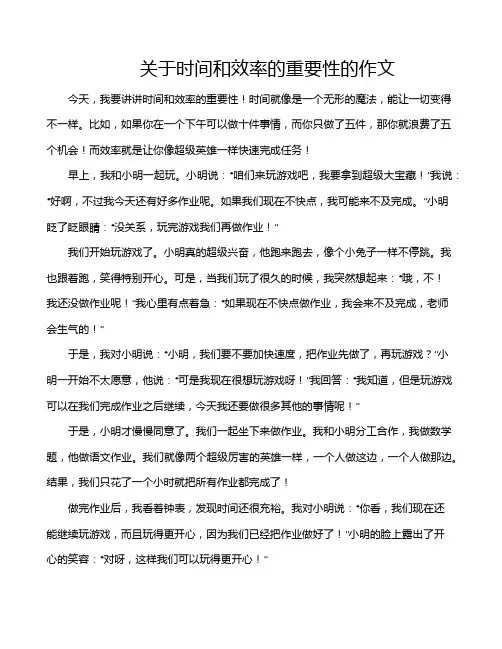 关于时间和效率的重要性的作文今天,我要讲讲时间和效率的重要性!时间就像是一个无形的魔法,能让一切变得不一样。