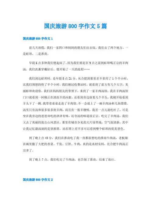 文档下载后可定制修改,请根据实际需要进行调整和使用,谢谢!并且,本店铺为大家提供各种类型的经典资料,如办公资料、职场资料、生活资料、学习资料、课堂资料、阅读资料、知识资料、党建资料、教育资料、其他资料等等,想了解不同资料格式和写法,敬请关注!Download tips: This document is carefully compiled by this editor. I hope that after you download it, it can help you solve practical problems. The document can be customized and modified after downloading, please adjust and use it according to actual needs, thank you!And, this store provides various types of classic materials for everyone, such as office materials, workplace materials, lifestyle materials, learning materials, classroom materials, reading materials, knowledge materials, party building materials, educational materials, other materials, etc. If you want to learn about different data formats and writing methods, please pay attention!高中旅行作文800字高中旅行作文800字5篇我有过一场独特的旅行,它带着我领略大自然的神奇与美妙,与我一同遇见那片无边的“雨中湖”,那块春花烂漫的田野和那座美丽,朦胧的小山。