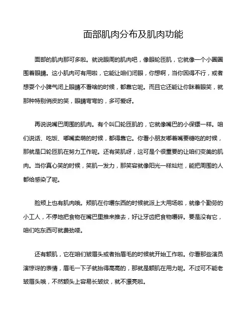 4. 面部肌肉的重要性面部肌肉不仅仅是我们表情和咀嚼的工具,还能够帮助我们与他人进行交流。