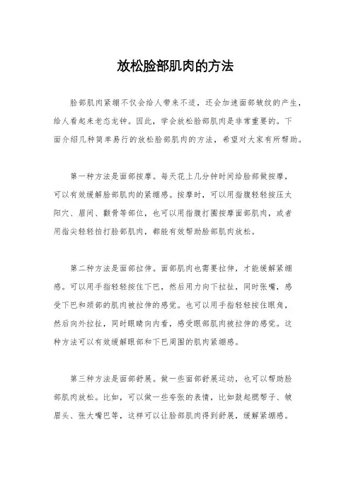 5. 面部肌肉的保养面部肌肉的保养非常重要,可以通过一些简单的方法来达到。