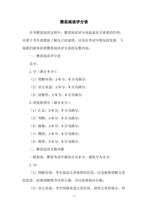 雅思阅读评分表在考雅思阅读过程中,雅思阅读评分表起着至关重要的作用。