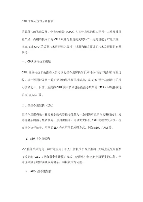 CPU的编码技术分析报告随着科技的飞速发展,中央处理器(CPU)作为计算机的核心组件,其重要性日益凸显。