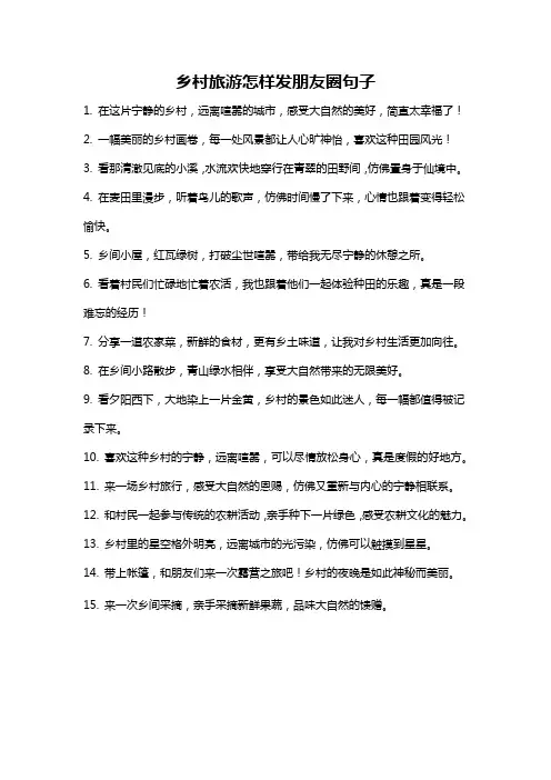 朋友圈乡村风景文案美句1. 朋友圈里的乡村风景,如诗如画,让心灵得到了一次美丽的洗礼。