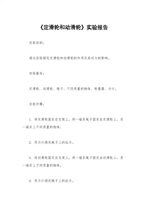 《定滑轮和动滑轮》实验报告实验目的,通过对定滑轮和动滑轮的实验,探究它们在物理学中的作用和原理。