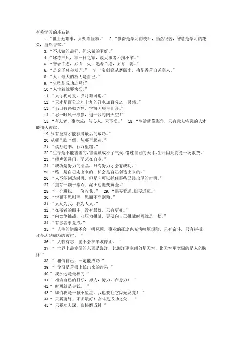 本篇文章来源于 [好读者吧--读者文摘爱好者的精典网站].源网址是:http:///Html/?12649.html篇二:学习励志座右铭学习励志座右铭高一10班 1.“世上无难事,只要肯登攀。