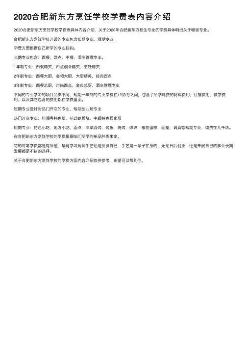 关于合肥新东方烹饪学校的学费方面内容介绍仅供参考,希望可以帮到你。