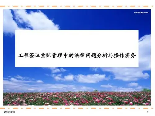 1. 签证管理的重要性在建筑工程中,由于项目的复杂性和不确定性,往往会出现一些工程变更或额外工作,而这些变更或额外工作如果不及时处理,就会对项目的进度和质量产生影响,甚至引发纠纷。