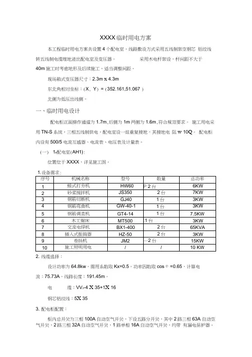XXXX临时用电方案本工程临时用电方案共设置4个配电室。