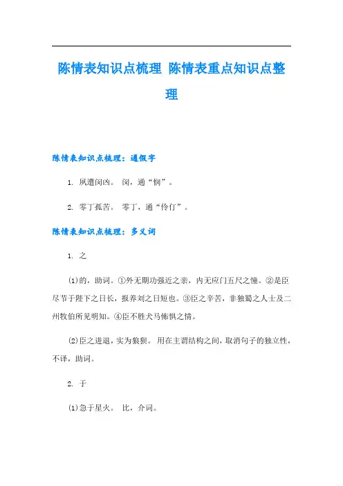 陈情表知识点梳理陈情表重点知识点整理陈情表知识点梳理:通假字1. 夙遭闵凶。