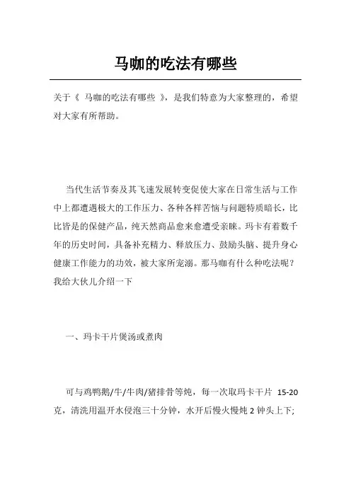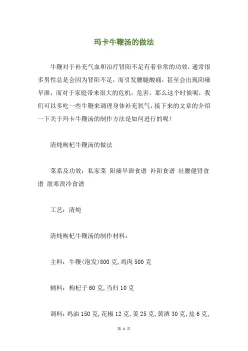 玛卡炖汤做法大全关于《玛卡炖汤做法大全》,是我们特意为大家整理的,希望对大家有所帮助。