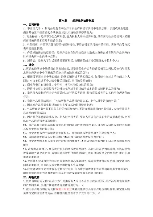 二、反不正当竞争法的概念及其基本原则(一)反不正当竞争法的概念P200反不正当竞争法:指调整在制止不正当竞争行为过程中发生的社会关系的法律规范的总称。