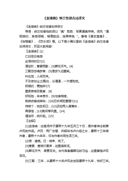 古诗金缕曲·亡妇忌日有感翻译赏析《金缕曲·亡妇忌日有感》作者为清朝文学家纳兰性德。
