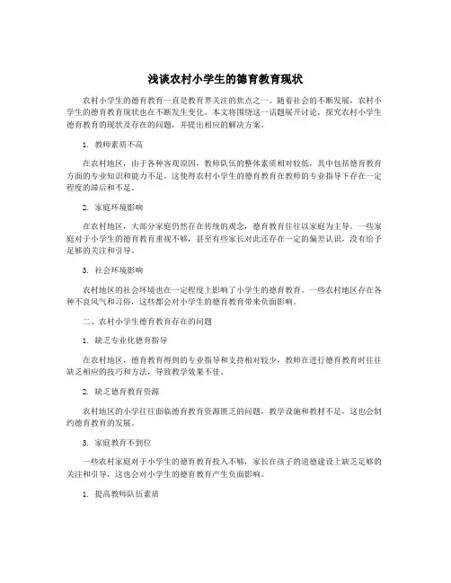 浅谈农村小学生的德育教育现状农村小学生的德育教育一直是教育界关注的焦点之一。
