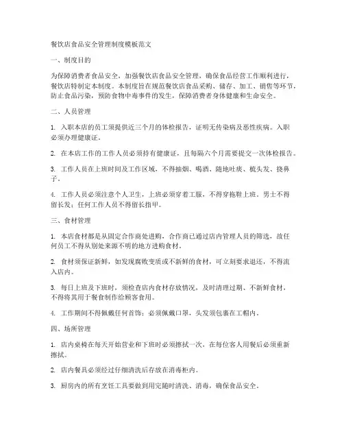 餐饮场所食品安全管理制度一、制度目的为确保消费者餐饮场所用餐的食品安全,提高餐饮服务质量,加强餐饮场所食品安全管理,预防和控制食品安全事故的发生,本店特制定餐饮场所食品安全管理制度。