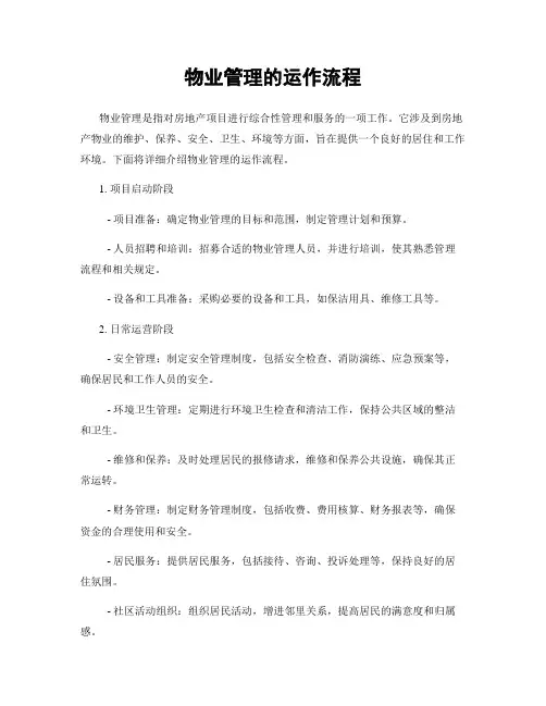物业管理的运作流程一、概述物业管理是指对房地产项目进行全面管理和维护的一项工作。