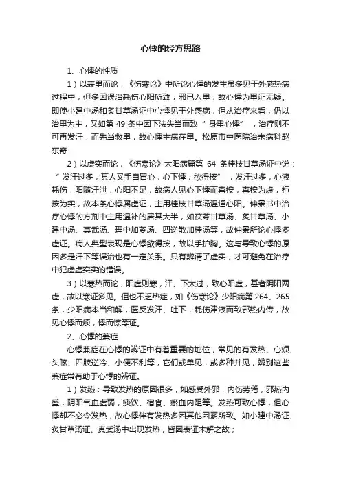 现将经方治心悸,结合用药经验,再结合临床上的点滴心得体会,整理如下:1.心阳虚证1.1心阳不足主症:叉手自冒心,心悸或心下悸,欲得按。