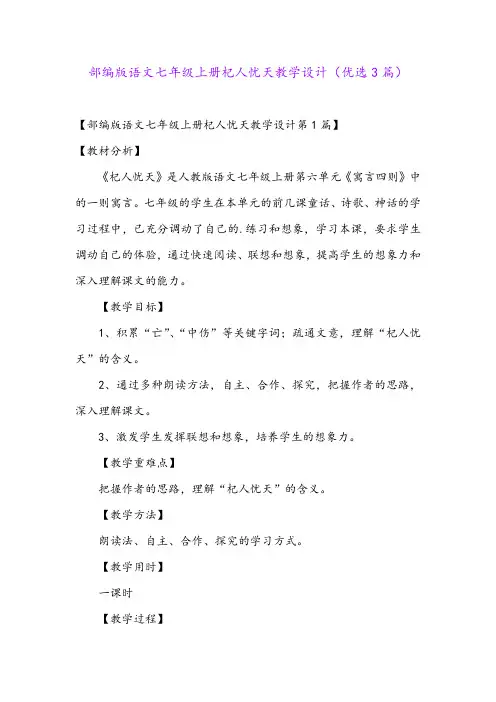 第24课《杞人忧天》教学设计《杞人忧天》是部编版教材七年级上册中的课文,选编在第六单元。