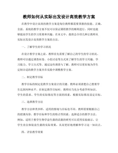 教师如何从实际出发设计高效教学方案在教学中设计高效的教学方案是每位教师都需要掌握的技能。