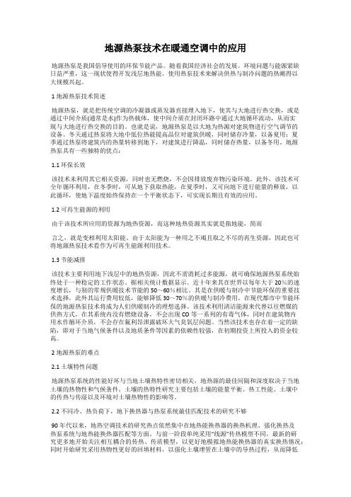 地源热泵技术在暖通空调节能中的应用地源热泵技术是一种利用地球热能进行空调供暖和制冷的技术。