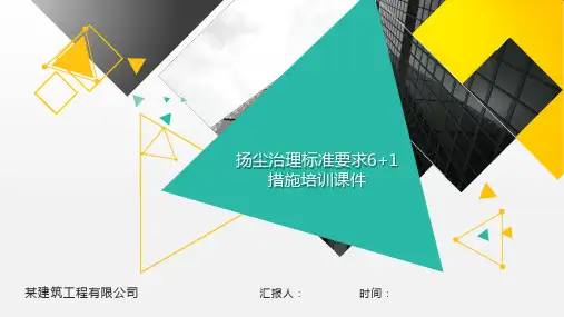 二、培训内容1. 扬尘的基本概念(1)扬尘的定义和分类;(2)扬尘的来源和成因;(3)扬尘对人体健康和环境的危害。