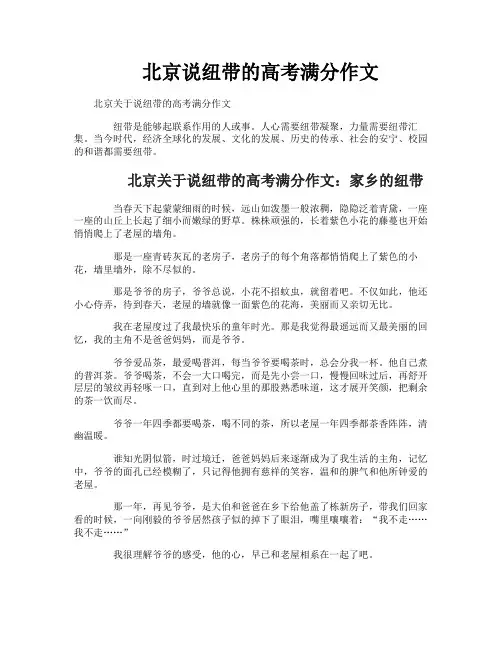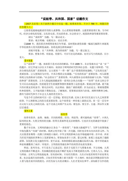 2017年北京卷高考作文《说纽带》(一)纽带,是连接人或事物的桥梁。