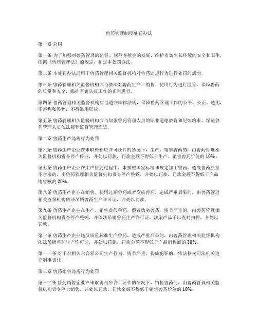 我国兽药管理制度一、引言兽药是用于预防、诊断和治疗动物疾病的药物。