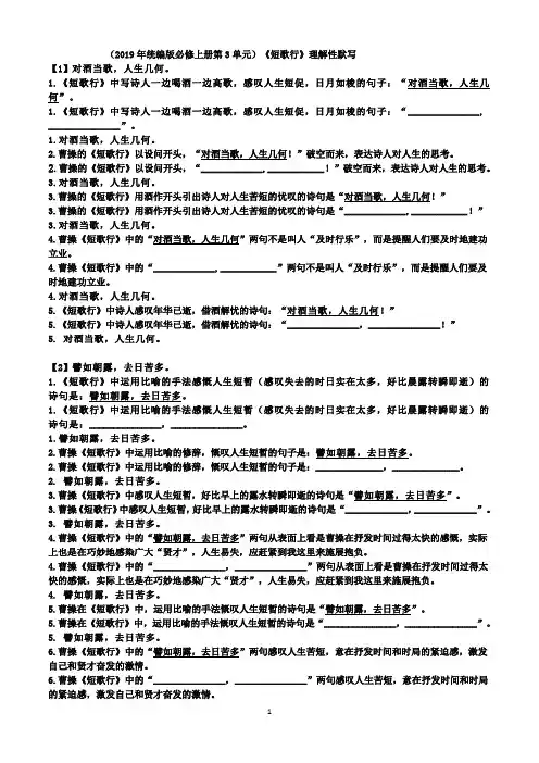 (2019年统编版必修上册第3单元)《短歌行》理解性默写【1】对酒当歌,人生几何。