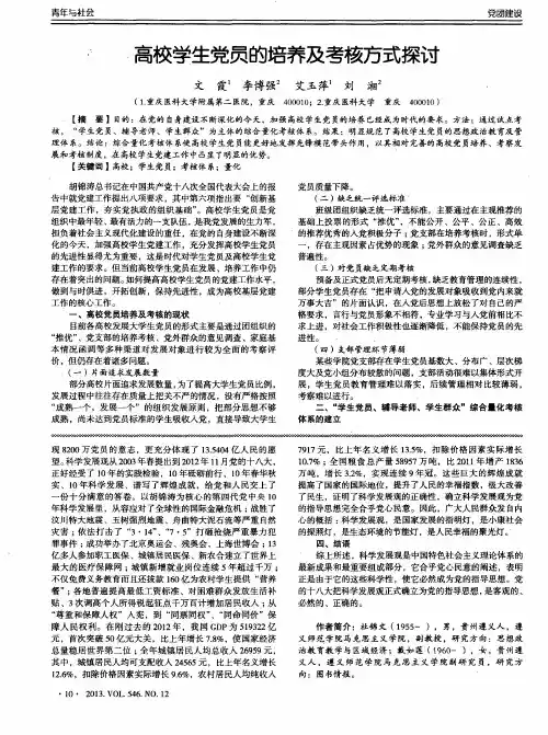 一、认识当前大学生党员发展量化考核体系的不足大学生党员是大学青年中的优秀分子,是高校基层党组织的重要组成部分,是马克思列宁主义的坚定捍卫者。